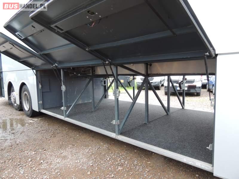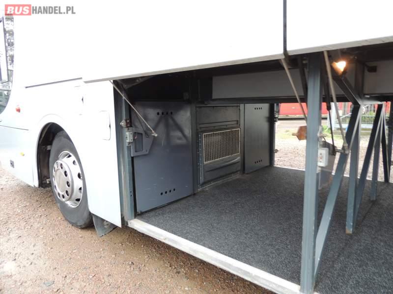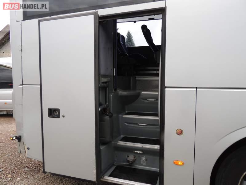 Wyposażenie: video, WC, lodówka, oświetlenie indywidualne, nawiewy dyszowe, ABS, ASR, tempomat, retarder, CD, klimatyzacja, radio, regulacja wysokości nadwozia, centralny zamek, podwójne szyby boczne, wspomaganie kierownicy, fotele odchylane i rozsuwane, DVD, ogrzewanie stacjonarne