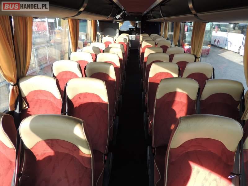 Wyposażenie: video, lodówka, caffebar, oświetlenie indywidualne, nawiewy dyszowe, siateczki, ABS, ASR, tempomat, retarder, CD, podnóżki, stoliczki, mikrofon, klimatyzacja, radio, kuchenka mikrofalowa, rampa dla inwalidów, regulacja wysokości nadwozia, centralny zamek, podwójne szyby boczne, wspomaganie kierownicy, fotele odchylane i rozsuwane, DVD, ogrzewanie stacjonarne