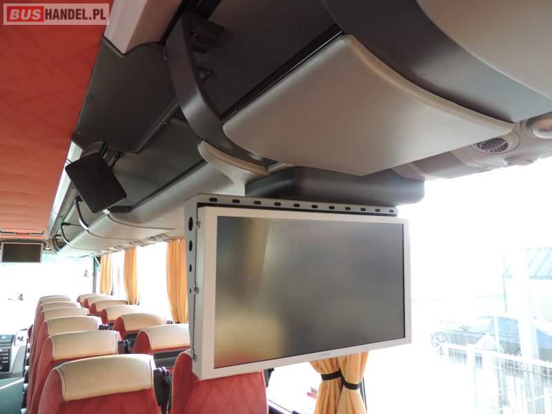 Wyposażenie: video, lodówka, caffebar, oświetlenie indywidualne, nawiewy dyszowe, siateczki, ABS, ASR, tempomat, retarder, CD, podnóżki, stoliczki, mikrofon, klimatyzacja, radio, kuchenka mikrofalowa, rampa dla inwalidów, regulacja wysokości nadwozia, centralny zamek, podwójne szyby boczne, wspomaganie kierownicy, fotele odchylane i rozsuwane, DVD, ogrzewanie stacjonarne