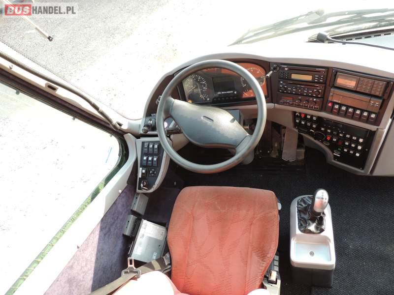 Wyposażenie: video, lodówka, caffebar, oświetlenie indywidualne, nawiewy dyszowe, siateczki, ABS, ASR, tempomat, retarder, CD, podnóżki, stoliczki, mikrofon, klimatyzacja, radio, kuchenka mikrofalowa, rampa dla inwalidów, regulacja wysokości nadwozia, centralny zamek, podwójne szyby boczne, wspomaganie kierownicy, fotele odchylane i rozsuwane, DVD, ogrzewanie stacjonarne