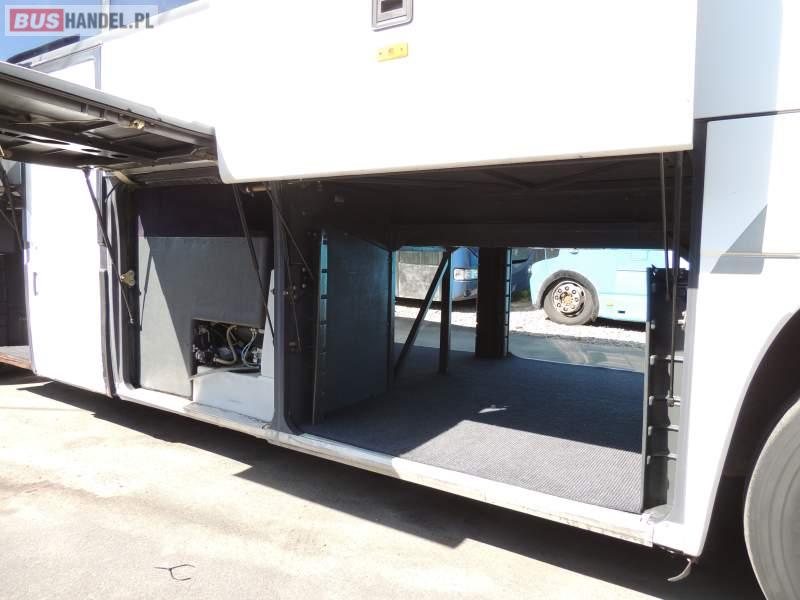 Wyposażenie: video, WC, lodówka, kabina sypialna, fotele odchylane, oświetlenie indywidualne, nawiewy dyszowe, ABS, ASR, tempomat, retarder, CD, mikrofon, klimatyzacja, radio, regulacja wysokości nadwozia, centralny zamek, podwójne szyby boczne, wspomaganie kierownicy, elektryczne lusterka, DVD, ogrzewanie stacjonarne
