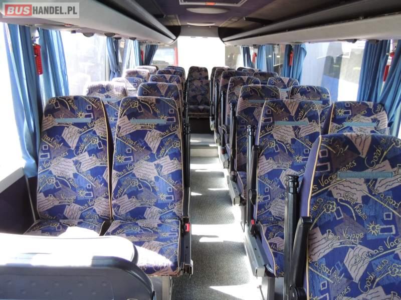 Wyposażenie: video, WC, lodówka, kabina sypialna, fotele odchylane, oświetlenie indywidualne, nawiewy dyszowe, ABS, ASR, tempomat, retarder, CD, mikrofon, klimatyzacja, radio, regulacja wysokości nadwozia, centralny zamek, podwójne szyby boczne, wspomaganie kierownicy, elektryczne lusterka, DVD, ogrzewanie stacjonarne