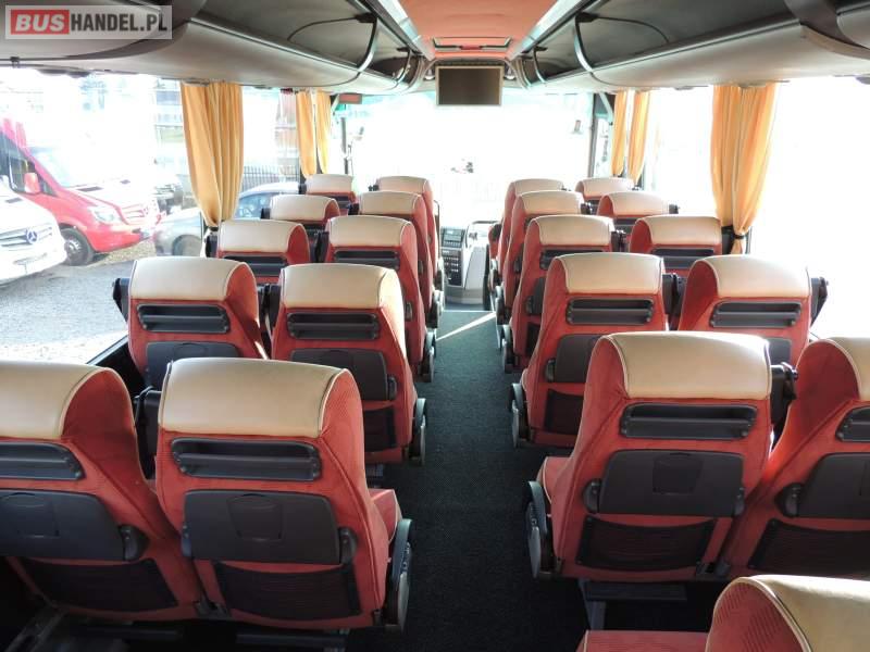 Wyposażenie: video, lodówka, caffebar, oświetlenie indywidualne, nawiewy dyszowe, siateczki, ABS, ASR, tempomat, retarder, CD, podnóżki, stoliczki, mikrofon, klimatyzacja, radio, kuchenka mikrofalowa, rampa dla inwalidów, regulacja wysokości nadwozia, centralny zamek, podwójne szyby boczne, wspomaganie kierownicy, fotele odchylane i rozsuwane, DVD, ogrzewanie stacjonarne