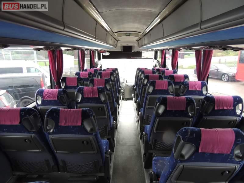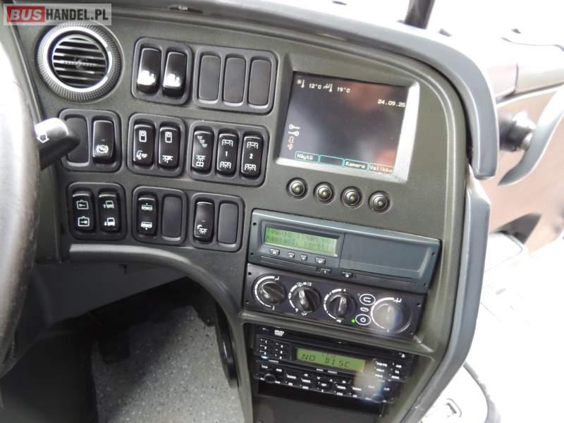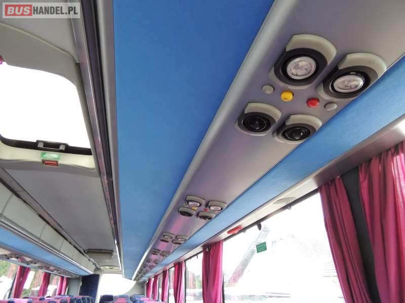 Wyposażenie: video, WC, lodówka, oświetlenie indywidualne, nawiewy dyszowe, ABS, ASR, tempomat, retarder, CD, klimatyzacja, radio, regulacja wysokości nadwozia, centralny zamek, podwójne szyby boczne, wspomaganie kierownicy, fotele odchylane i rozsuwane, DVD, ogrzewanie stacjonarne