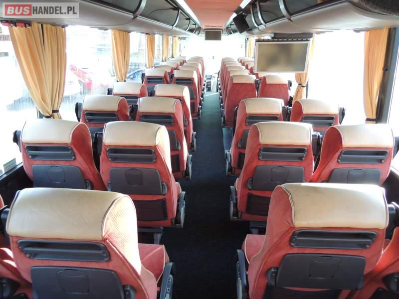 Wyposażenie: video, lodówka, caffebar, oświetlenie indywidualne, nawiewy dyszowe, siateczki, ABS, ASR, tempomat, retarder, CD, podnóżki, stoliczki, mikrofon, klimatyzacja, radio, kuchenka mikrofalowa, rampa dla inwalidów, regulacja wysokości nadwozia, centralny zamek, podwójne szyby boczne, wspomaganie kierownicy, fotele odchylane i rozsuwane, DVD, ogrzewanie stacjonarne