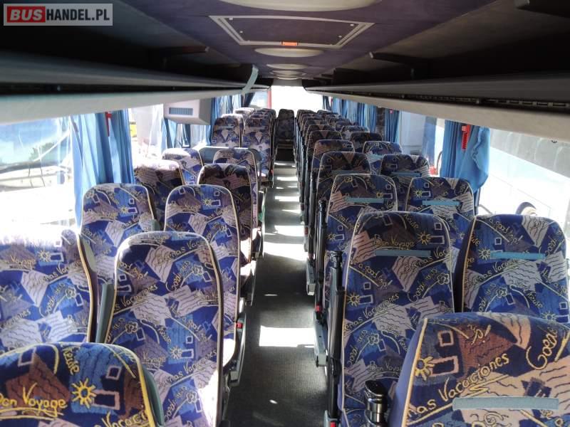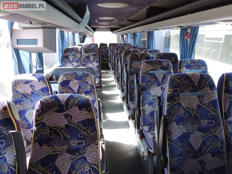 Wyposażenie: video, WC, lodówka, kabina sypialna, fotele odchylane, oświetlenie indywidualne, nawiewy dyszowe, ABS, ASR, tempomat, retarder, CD, mikrofon, klimatyzacja, radio, regulacja wysokości nadwozia, centralny zamek, podwójne szyby boczne, wspomaganie kierownicy, elektryczne lusterka, DVD, ogrzewanie stacjonarne