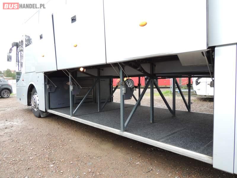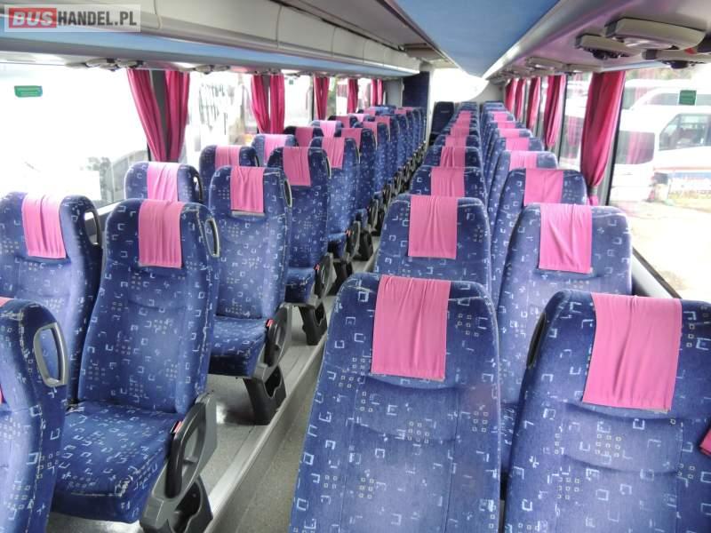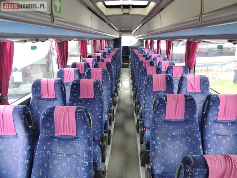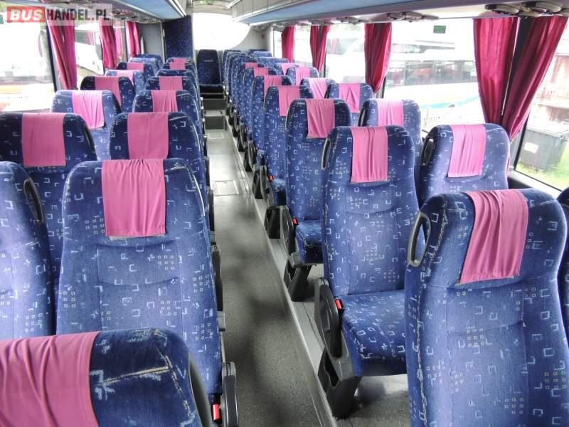 Wyposażenie: video, WC, lodówka, oświetlenie indywidualne, nawiewy dyszowe, ABS, ASR, tempomat, retarder, CD, klimatyzacja, radio, regulacja wysokości nadwozia, centralny zamek, podwójne szyby boczne, wspomaganie kierownicy, fotele odchylane i rozsuwane, DVD, ogrzewanie stacjonarne