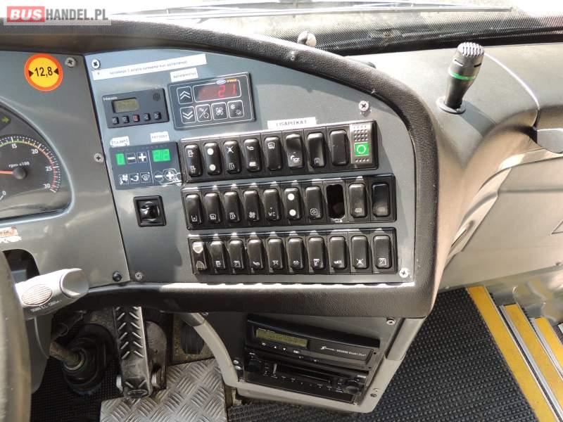 Wyposażenie: video, WC, fotele odchylane, nawiewy dyszowe, ABS, ASR, tempomat, retarder, CD, mikrofon, klimatyzacja, radio, regulacja wysokości nadwozia, podwójne szyby boczne, wspomaganie kierownicy, DVD, ogrzewanie stacjonarne