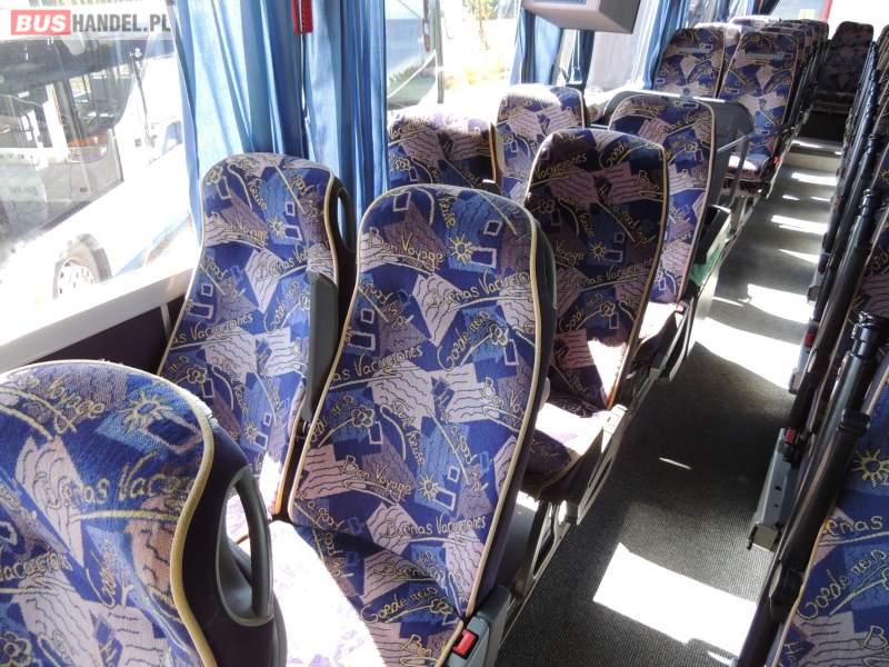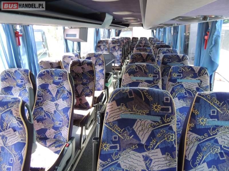 Wyposażenie: video, WC, lodówka, kabina sypialna, fotele odchylane, oświetlenie indywidualne, nawiewy dyszowe, ABS, ASR, tempomat, retarder, CD, mikrofon, klimatyzacja, radio, regulacja wysokości nadwozia, centralny zamek, podwójne szyby boczne, wspomaganie kierownicy, elektryczne lusterka, DVD, ogrzewanie stacjonarne
