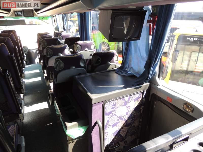 Wyposażenie: video, WC, lodówka, kabina sypialna, fotele odchylane, oświetlenie indywidualne, nawiewy dyszowe, ABS, ASR, tempomat, retarder, CD, mikrofon, klimatyzacja, radio, regulacja wysokości nadwozia, centralny zamek, podwójne szyby boczne, wspomaganie kierownicy, elektryczne lusterka, DVD, ogrzewanie stacjonarne