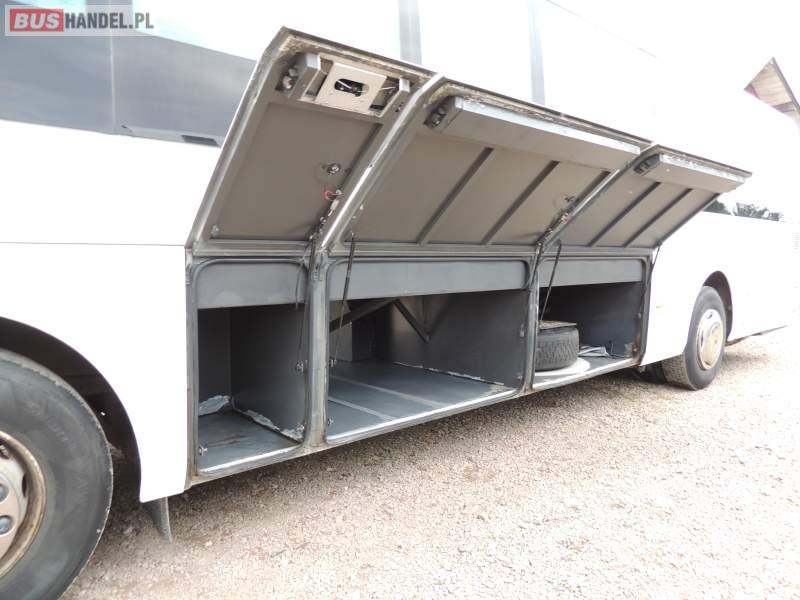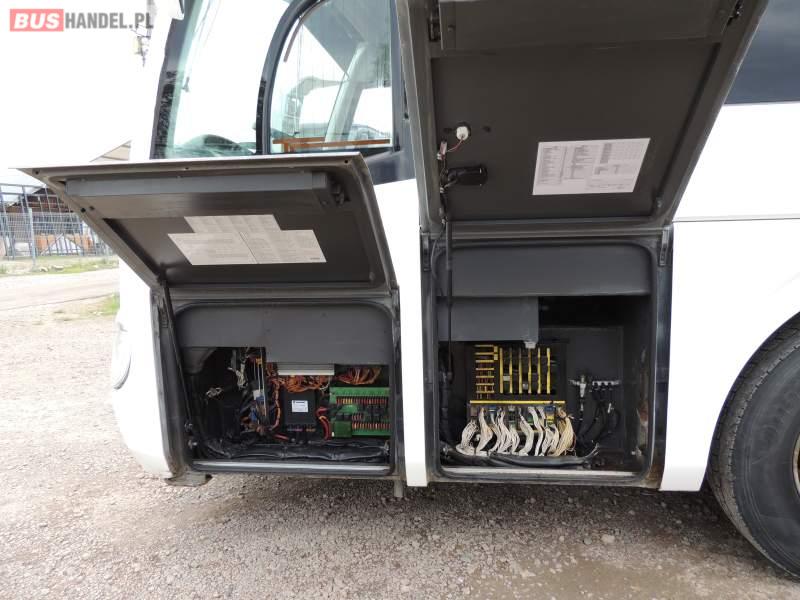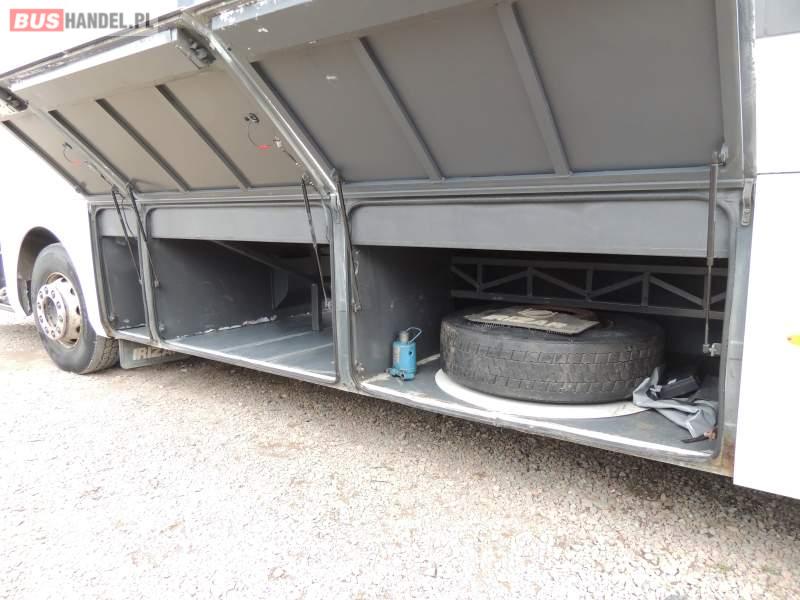 Wyposażenie: oświetlenie indywidualne, nawiewy dyszowe, ABS, ASR, tempomat, retarder, klimatyzacja, radio, regulacja wysokości nadwozia, centralny zamek, podwójne szyby boczne, wspomaganie kierownicy, elektryczne lusterka, fotele odchylane i rozsuwane, ogrzewanie stacjonarne